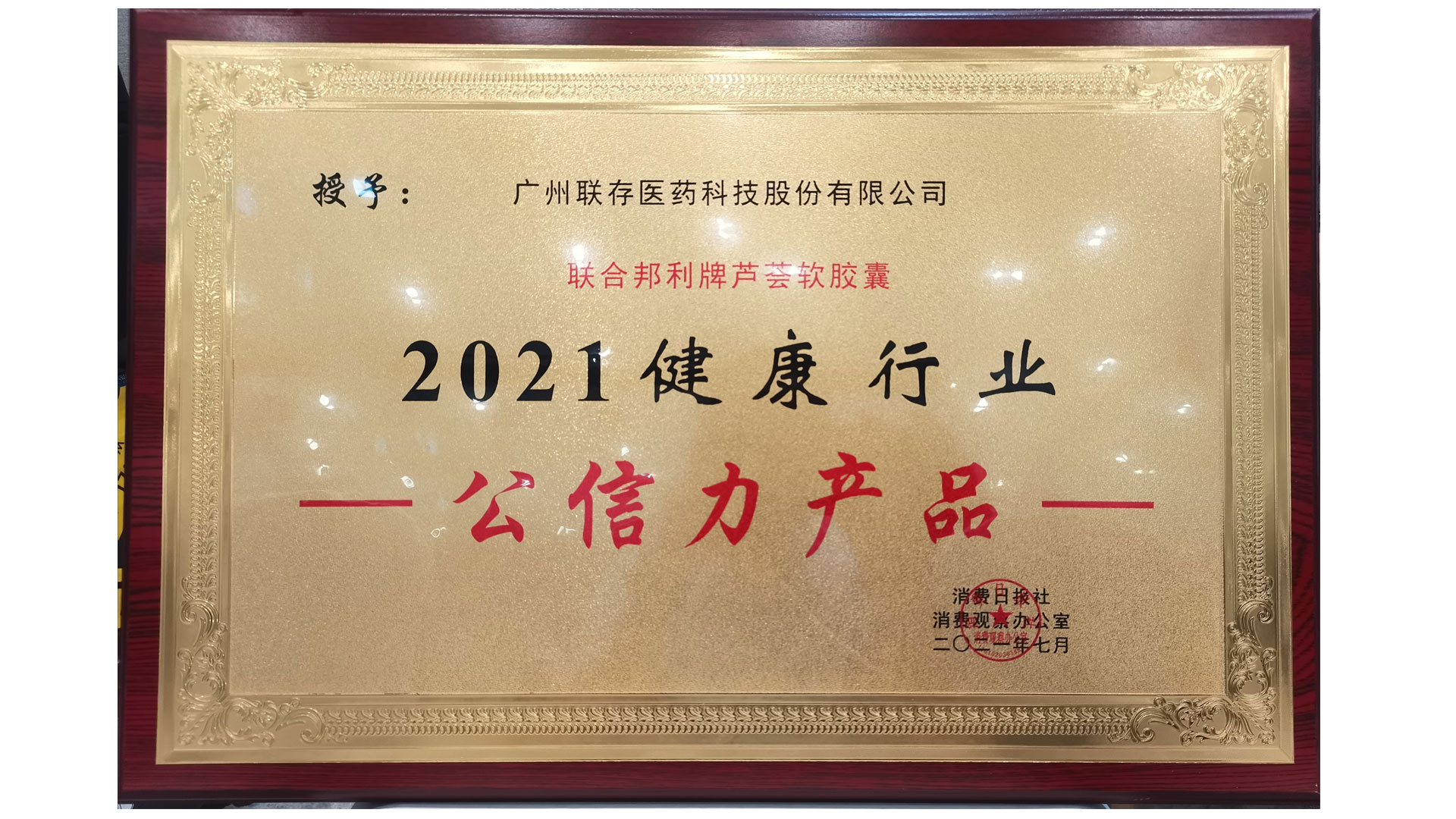 合作邦利牌卢荟软口服液被评为“2021键康制造业政府公信力商品”荣誉奖