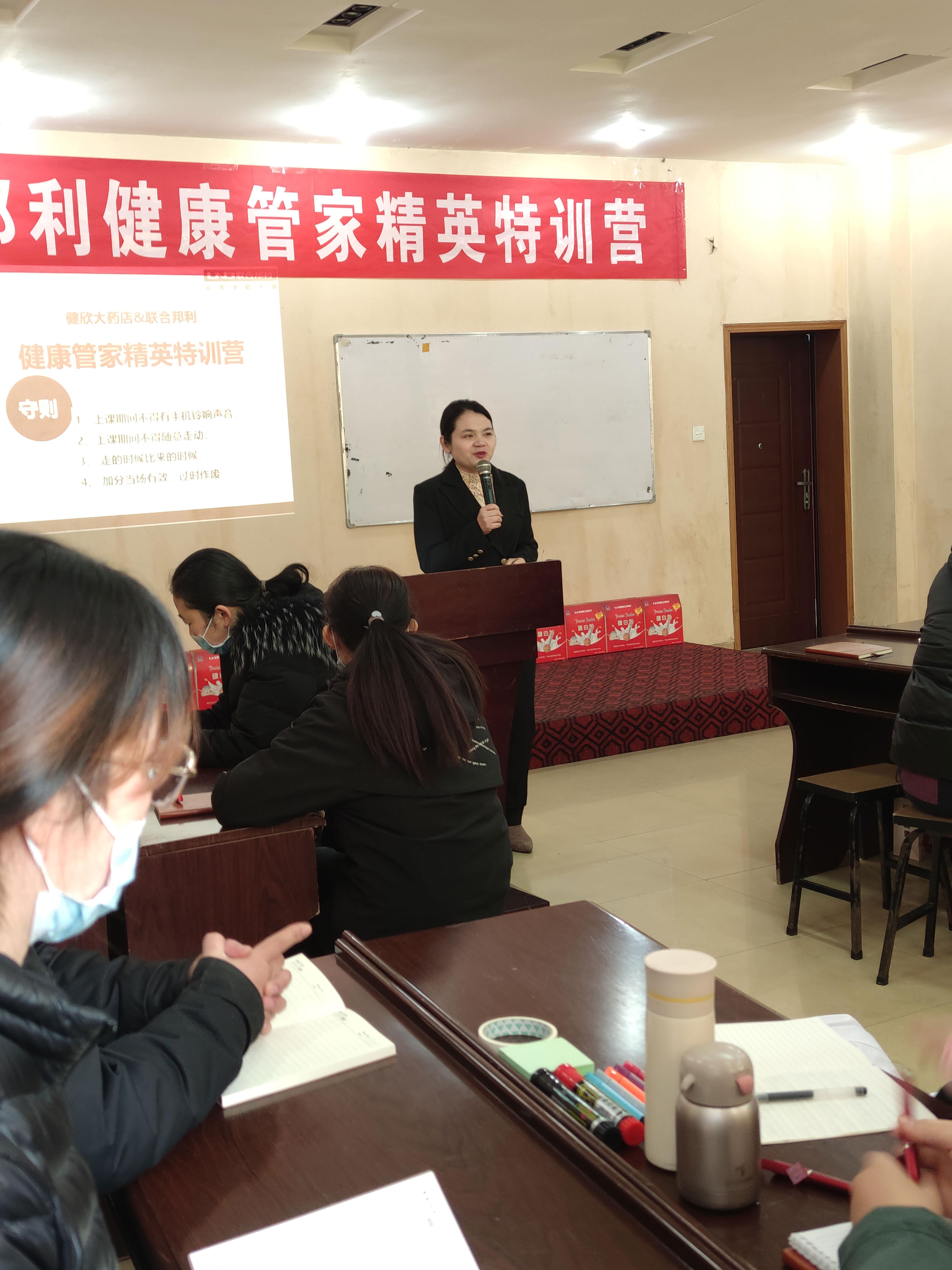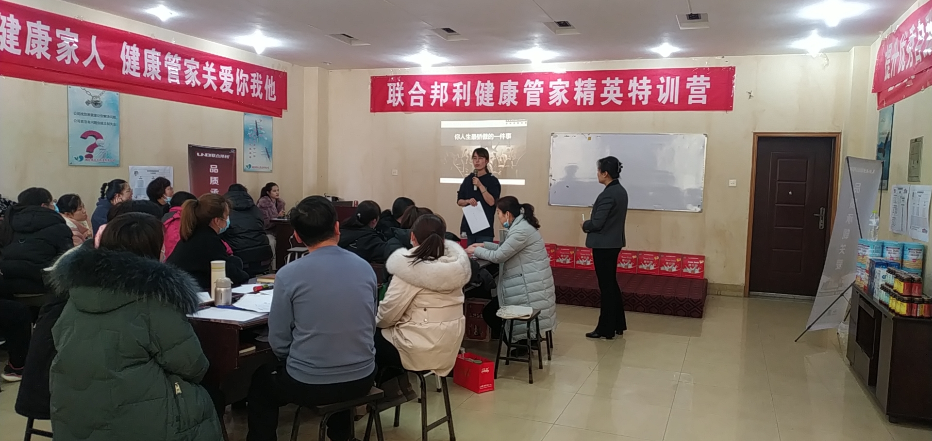 健欣大大药房加盟较少厂家总运营总监高炳玲女性朋友有与携手邦利省区运营总监栾悦红女性朋友有莅临陪训活动实地,鼓励激励人,给油加油打气,活动实地重新点燃人们的了解积极主动。